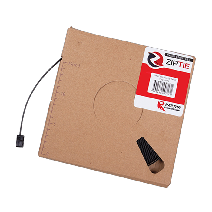 Raptor Cable Tie Black 15m x 7.6mm Continuous Roll