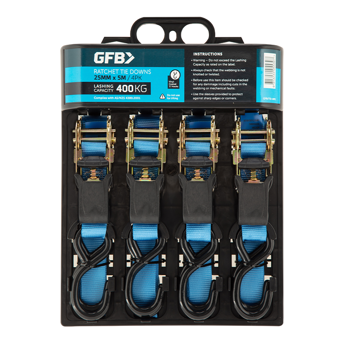 GFB Ratchet Tie Down Starp 25mm x 5m LC 400kg (Pack/4)