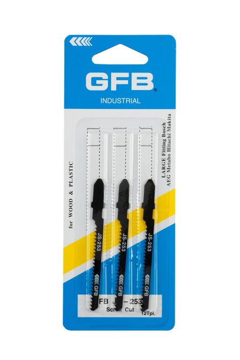 GFB Jigsaw Blade T-Shank 50mm x 12TPI Scroll Cut - Wood (Card/3)