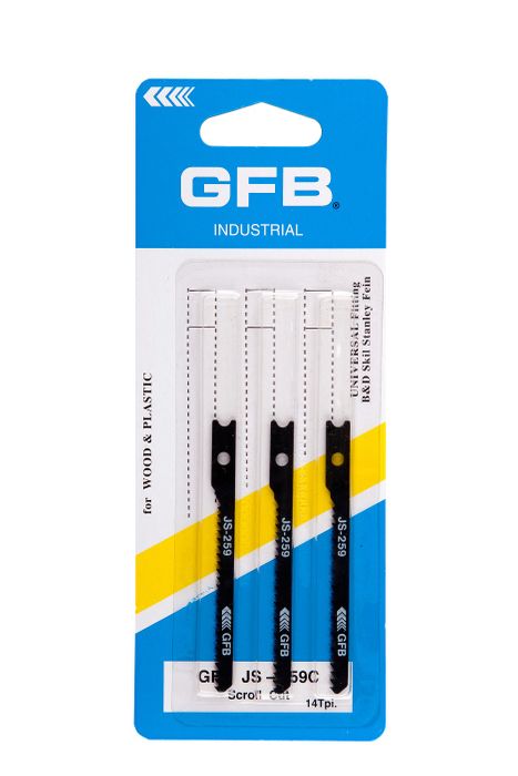 GFB Jigsaw Blade U-Shank 50mm x 12TPI Scroll Cut - Wood (Card/3)