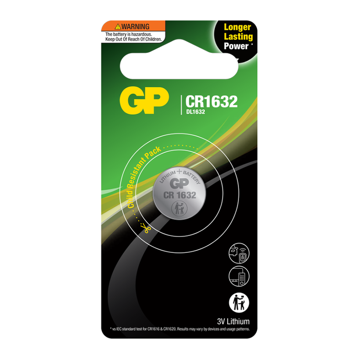GP 3V 125mAh Lithium (LiMnO2) Coin Cell Battery - Card of 1