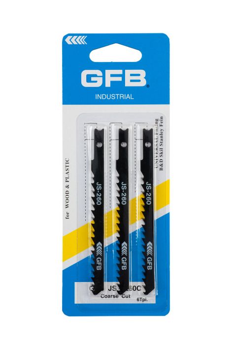 GFB Jigsaw Blade U-Shank 75mm x 6TPI Coarse - Wood (Card/3)